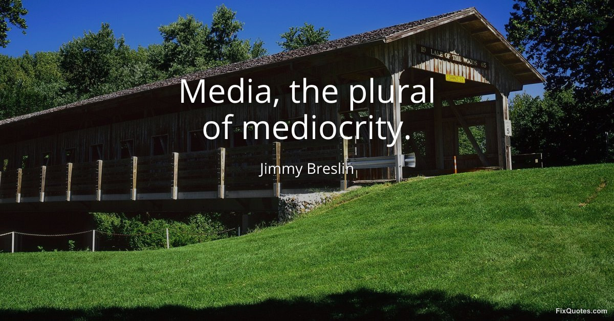 Breslin, Jimmy. (2026, January 17). Media, the plural of mediocrity. FixQuotes. https://fixquotes.com/quotes/media-the-plural-of-mediocrity-56735/
