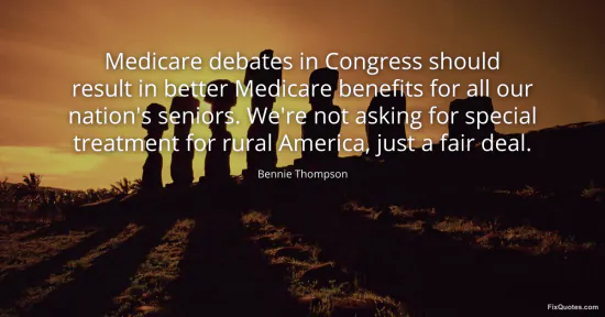 Thompson, Bennie. (2026, January 17). Medicare debates in Congress should result in better Medicare benefits for all our nation's seniors. We're not asking for special treatment for rural America, just a fair deal. FixQuotes. https://fixquotes.com/quotes/medicare-debates-in-congress-should-result-in-61157/