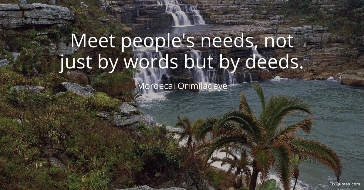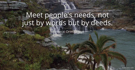 Orimiladeye, Mordecai. (2026, February 17). Meet people's needs, not just by words, but by deeds. FixQuotes. https://fixquotes.com/quotes/meet-peoples-needs-not-just-by-words-but-by-deeds-185603/