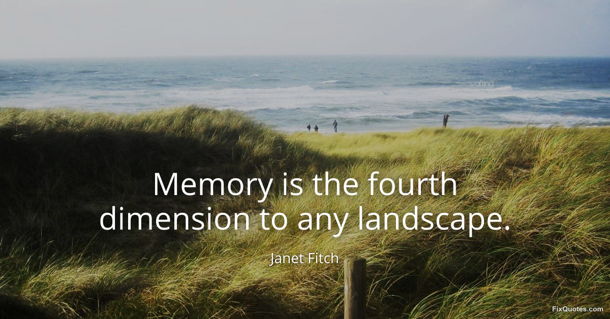 Fitch, Janet. (2026, January 11). Memory is the fourth dimension to any landscape. FixQuotes. https://fixquotes.com/quotes/memory-is-the-fourth-dimension-to-any-landscape-183833/