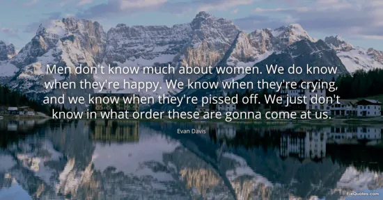 "Men don't know much about women. We do know when they're happy. We know when they're crying, and we know when they're pissed off. We just don't know in what order these are gonna come at us"