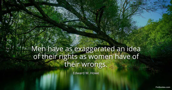 Howe, Edward W. (2026, January 16). Men have as exaggerated an idea of their rights as women have of their wrongs. FixQuotes. https://fixquotes.com/quotes/men-have-as-exaggerated-an-idea-of-their-rights-137339/