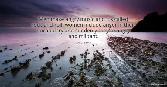 DiFranco, Ani. "Men make angry music and it's called rock-and-roll; women include anger in their vocabulary and suddenly they're angry and militant." FixQuotes. January 16, 2026. https://fixquotes.com/quotes/men-make-angry-music-and-its-called-rock-and-roll-109042/.
