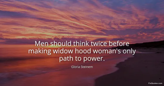 Steinem, Gloria. (n.d.). Men should think twice before making widow hood woman's only path to power. FixQuotes. https://fixquotes.com/quotes/men-should-think-twice-before-making-widow-hood-55303/