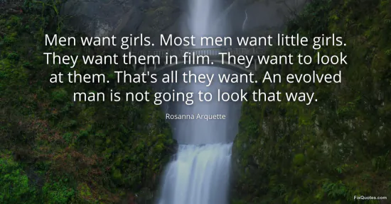 Arquette, Rosanna. "Men want girls. Most men want little girls. They want them in film. They want to look at them. That's all they want. An evolved man is not going to look that way." FixQuotes. January 16, 2026. https://fixquotes.com/quotes/men-want-girls-most-men-want-little-girls-they-87857/.