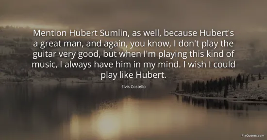 Costello, Elvis. (2026, January 15). Mention Hubert Sumlin, as well, because Hubert's a great man, and again, you know, I don't play the guitar very good, but when I'm playing this kind of music, I always have him in my mind. I wish I could play like Hubert. FixQuotes. https://fixquotes.com/quotes/mention-hubert-sumlin-as-well-because-huberts-a-150598/