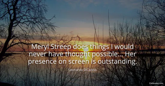 DiCaprio, Leonardo. (2026, January 18). Meryl Streep does things I would never have thought possible... Her presence on screen is outstanding. FixQuotes. https://fixquotes.com/quotes/meryl-streep-does-things-i-would-never-have-11326/