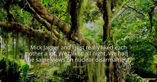 Hall, Jerry. "Mick Jagger and I just really liked each other a lot. We talked all night. We had the same views on nuclear disarmament." FixQuotes. January 16, 2026. https://fixquotes.com/quotes/mick-jagger-and-i-just-really-liked-each-other-a-112279/.