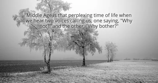 Harris, Sydney J. "Middle Age is that perplexing time of life when we hear two voices calling us, one saying, "Why not?" and the other, "Why bother?"." FixQuotes. January 16, 2026. https://fixquotes.com/quotes/middle-age-is-that-perplexing-time-of-life-when-106907/.