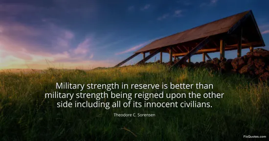 Sorensen, Theodore C. (2026, January 17). Military strength in reserve is better than military strength being reigned upon the other side including all of its innocent civilians. FixQuotes. https://fixquotes.com/quotes/military-strength-in-reserve-is-better-than-58847/