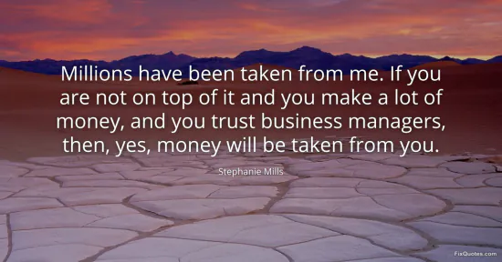 Mills, Stephanie. (2026, January 15). Millions have been taken from me. If you are not on top of it and you make a lot of money, and you trust business managers, then, yes, money will be taken from you. FixQuotes. https://fixquotes.com/quotes/millions-have-been-taken-from-me-if-you-are-not-156022/