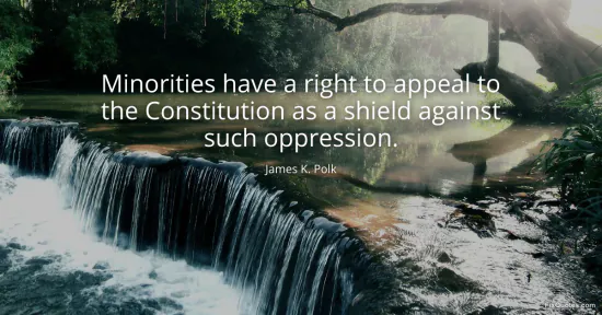 Polk, James K. (2026, January 16). Minorities have a right to appeal to the Constitution as a shield against such oppression. FixQuotes. https://fixquotes.com/quotes/minorities-have-a-right-to-appeal-to-the-109503/