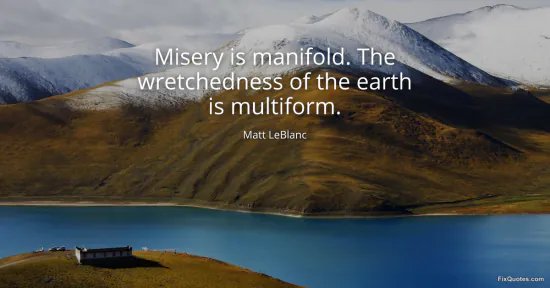 LeBlanc, Matt. "Misery is manifold. The wretchedness of the earth is multiform." FixQuotes. January 16, 2026. https://fixquotes.com/quotes/misery-is-manifold-the-wretchedness-of-the-earth-88711/.
