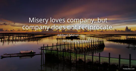 Mizner, Addison. "Misery loves company, but company does not reciprocate." FixQuotes. February 8, 2026. https://fixquotes.com/quotes/misery-loves-company-but-company-does-not-169231/.
