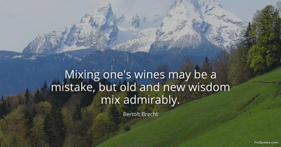 The subtext is also a warning against purism. “Old wisdom” can ossify into cliché or ideology; “new wisdom” can become fashionable certainty. Their mixture is “admirable” because it keeps both unstable, forcing scrutiny. In Brecht’s world - Weimar volatility, fascism’s rise, exile, the postwar struggle over what art is for - clean continuities are suspect. The joke about wine masks a serious claim: history doesn’t offer us a single vintage to drink. Survival, politically and artistically, depends on learning how to blend.