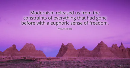 Erickson, Arthur. (2026, January 17). Modernism released us from the constraints of everything that had gone before with a euphoric sense of freedom. FixQuotes. https://fixquotes.com/quotes/modernism-released-us-from-the-constraints-of-38662/