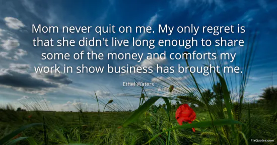 Waters, Ethel. "Mom never quit on me. My only regret is that she didn't live long enough to share some of the money and comforts my work in show business has brought me." FixQuotes. January 17, 2026. https://fixquotes.com/quotes/mom-never-quit-on-me-my-only-regret-is-that-she-61306/.