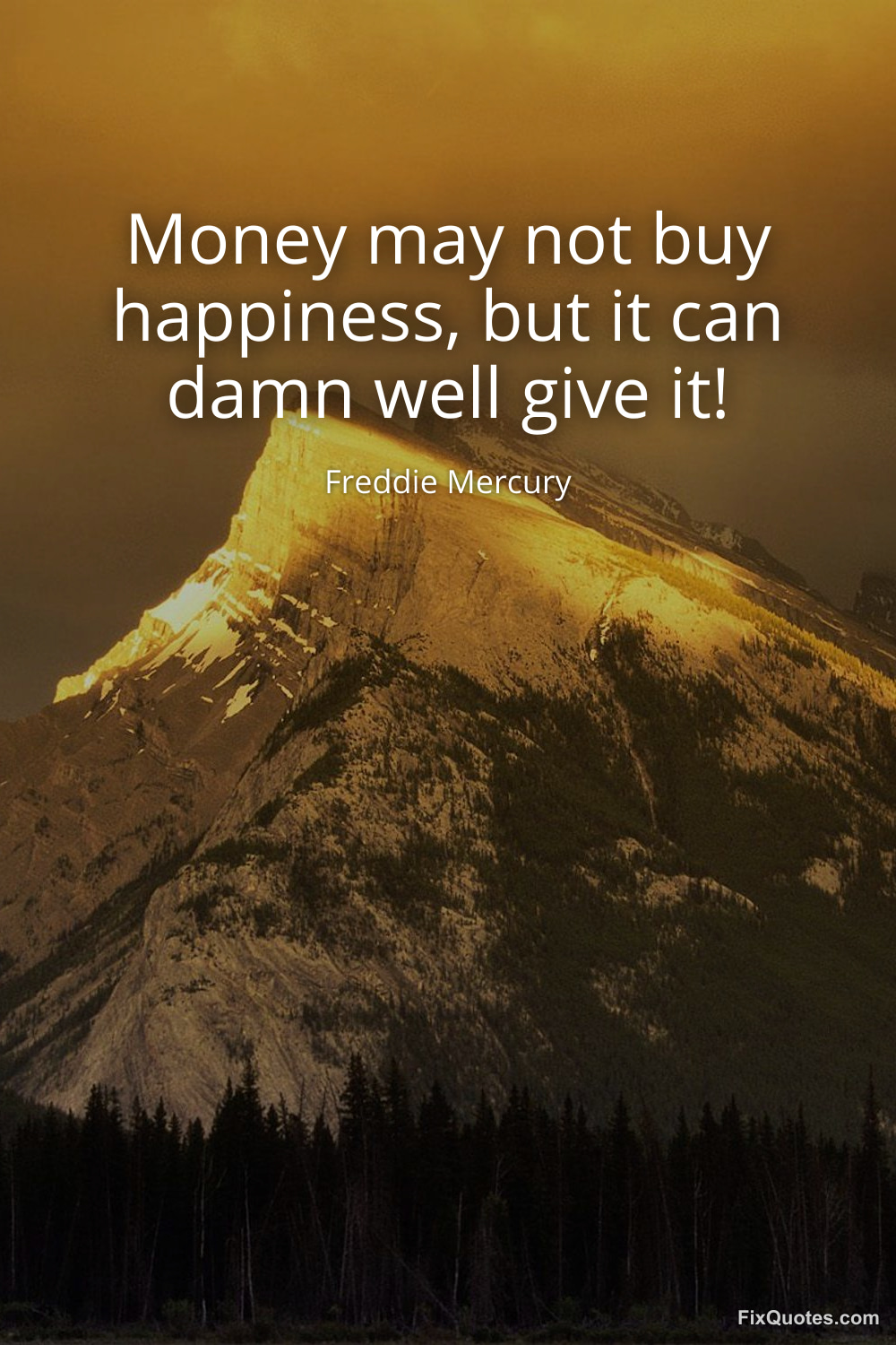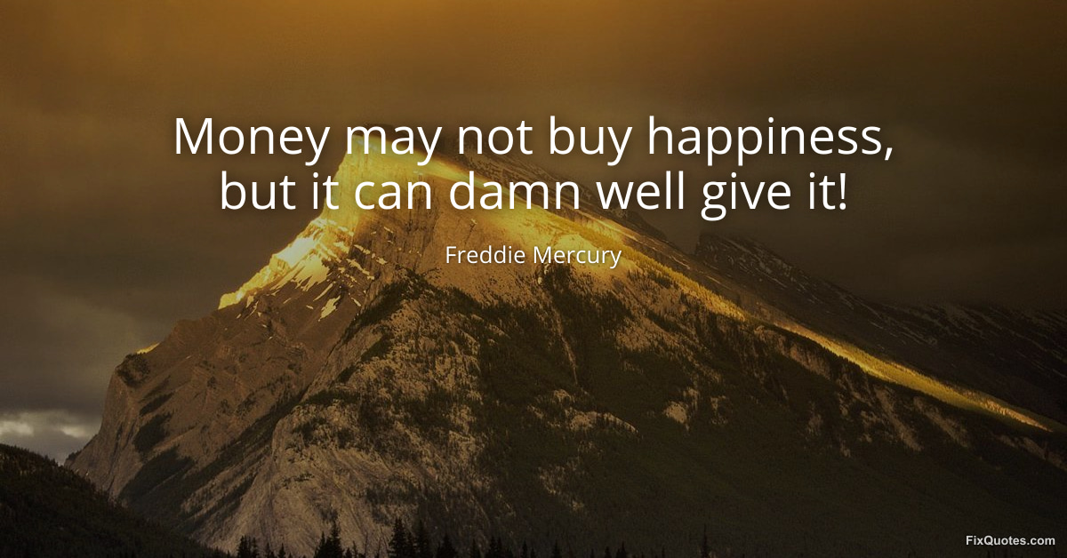 Mercury, Freddie. (2026, January 15). Money may not buy happiness, but it can damn well give it! FixQuotes. https://fixquotes.com/quotes/money-may-not-buy-happiness-but-it-can-damn-well-19477/