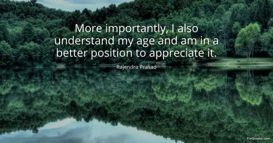 Prasad, Rajendra. (2026, January 16). More importantly, I also understand my age and am in a better position to appreciate it. FixQuotes. https://fixquotes.com/quotes/more-importantly-i-also-understand-my-age-and-am-133729/