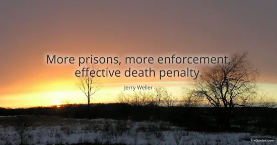 The intent is electoral and tribal: reassure anxious voters that crime has a simple solution and that the speaker belongs to the law-and-order camp. Each clause escalates. "More prisons" gestures toward visible infrastructure and jobs; it also implies that incarceration rates are a metric of safety rather than a symptom of policy failure. "More enforcement" widens the mandate from bricks and bars to policing and prosecutorial power, a quiet argument for expanding the state in the name of shrinking danger. Then comes the clincher: "effective death penalty". Not just capital punishment, but effective capital punishment, as if the problem is managerial inefficiency rather than ethics, wrongful convictions, or disproportionate application.