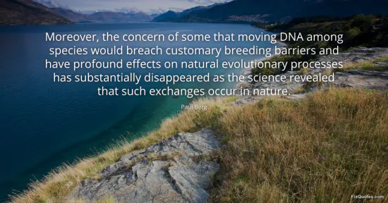 Berg, Paul. (2026, January 16). Moreover, the concern of some that moving DNA among species would breach customary breeding barriers and have profound effects on natural evolutionary processes has substantially disappeared as the science revealed that such exchanges occur in nature. FixQuotes. https://fixquotes.com/quotes/moreover-the-concern-of-some-that-moving-dna-130562/