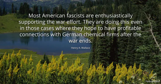 Wallace, Henry A. "Most American fascists are enthusiastically supporting the war effort. They are doing this even in those cases where they hope to have profitable connections with German chemical firms after the war ends." FixQuotes. January 18, 2026. https://fixquotes.com/quotes/most-american-fascists-are-enthusiastically-20369/.