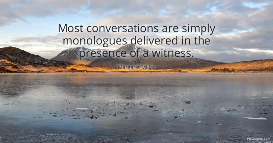 Millar, Margaret. (2026, January 14). Most conversations are simply monologues delivered in the presence of a witness. FixQuotes. https://fixquotes.com/quotes/most-conversations-are-simply-monologues-121613/