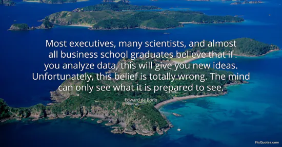 Bono, Edward de. "Most executives, many scientists, and almost all business school graduates believe that if you analyze data, this will give you new ideas. Unfortunately, this belief is totally wrong. The mind can only see what it is prepared to see." FixQuotes. January 15, 2026. https://fixquotes.com/quotes/most-executives-many-scientists-and-almost-all-150515/.