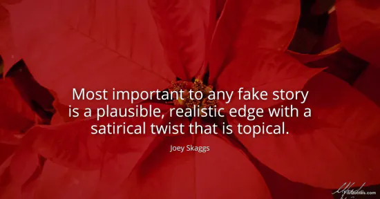 Skaggs, Joey. "Most important to any fake story is a plausible, realistic edge with a satirical twist that is topical." FixQuotes. January 16, 2026. https://fixquotes.com/quotes/most-important-to-any-fake-story-is-a-plausible-133358/.