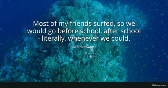 Hemsworth, Liam. (2026, January 15). Most of my friends surfed, so we would go before school, after school - literally, whenever we could. FixQuotes. https://fixquotes.com/quotes/most-of-my-friends-surfed-so-we-would-go-before-172518/