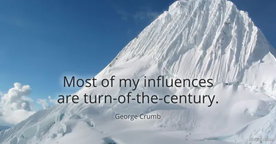 Crumb, George. (2026, January 17). Most of my influences are turn-of-the-century. FixQuotes. https://fixquotes.com/quotes/most-of-my-influences-are-turn-of-the-century-70665/