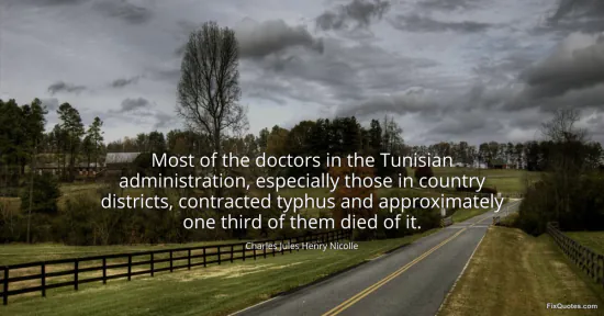 Nicolle, Charles Jules Henry. (2026, January 17). Most of the doctors in the Tunisian administration, especially those in country districts, contracted typhus and approximately one third of them died of it. FixQuotes. https://fixquotes.com/quotes/most-of-the-doctors-in-the-tunisian-50670/