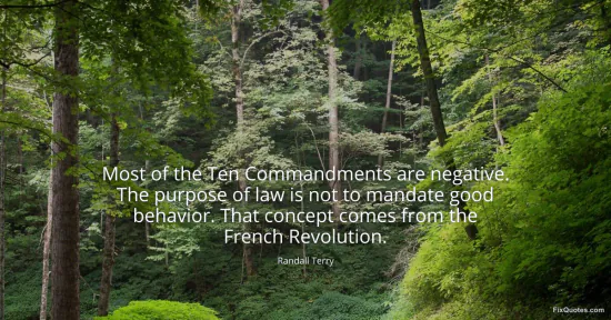 Terry, Randall. (2026, January 16). Most of the Ten Commandments are negative. The purpose of law is not to mandate good behavior. That concept comes from the French Revolution. FixQuotes. https://fixquotes.com/quotes/most-of-the-ten-commandments-are-negative-the-128784/