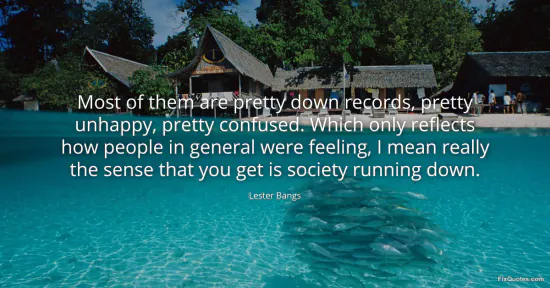 Bangs, Lester. "Most of them are pretty down records, pretty unhappy, pretty confused. Which only reflects how people in general were feeling, I mean really the sense that you get is society running down." FixQuotes. January 17, 2026. https://fixquotes.com/quotes/most-of-them-are-pretty-down-records-pretty-81516/.
