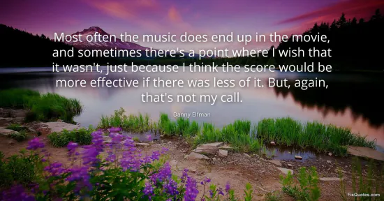 Elfman, Danny. (2026, January 17). Most often the music does end up in the movie, and sometimes there's a point where I wish that it wasn't, just because I think the score would be more effective if there was less of it. But, again, that's not my call. FixQuotes. https://fixquotes.com/quotes/most-often-the-music-does-end-up-in-the-movie-and-45345/