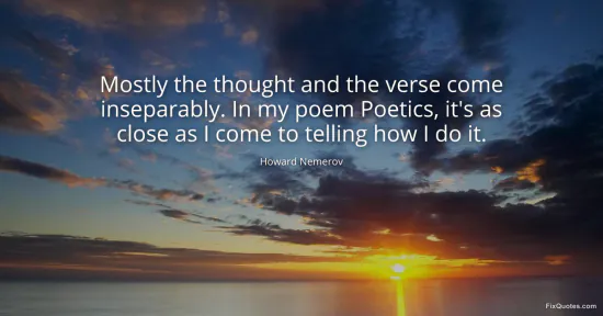 Nemerov, Howard. "Mostly the thought and the verse come inseparably. In my poem Poetics, it's as close as I come to telling how I do it." FixQuotes. January 17, 2026. https://fixquotes.com/quotes/mostly-the-thought-and-the-verse-come-inseparably-68203/.