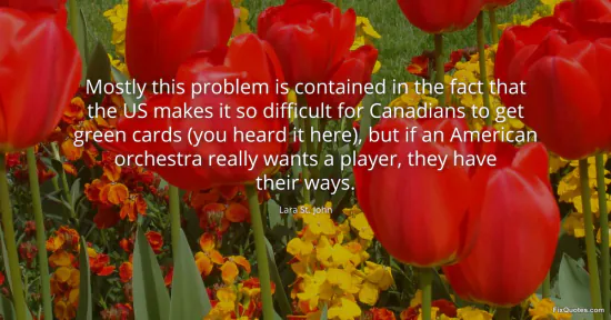 John, Lara St. (2026, January 17). Mostly this problem is contained in the fact that the US makes it so difficult for Canadians to get green cards (you heard it here), but if an American orchestra really wants a player, they have their ways. FixQuotes. https://fixquotes.com/quotes/mostly-this-problem-is-contained-in-the-fact-that-63411/