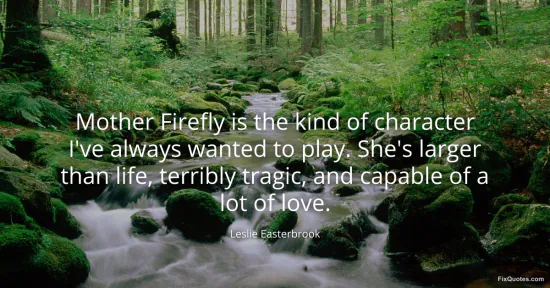Easterbrook, Leslie. "Mother Firefly is the kind of character I've always wanted to play. She's larger than life, terribly tragic, and capable of a lot of love." FixQuotes. January 15, 2026. https://fixquotes.com/quotes/mother-firefly-is-the-kind-of-character-ive-164156/.