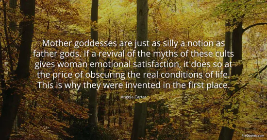 Angela Carter dismisses mother goddesses and father gods as equally silly because both rest on the same mistake: turning human relations and historical power into sacred, unchangeable truths. Divine archetypes offer consolation and identity, but they also distract from the structures that actually shape womens lives: labor, law, violence, money, and the stories societies tell about sex and power. Emotional satisfaction, she suggests, is the bait of ideology. Myths seduce by promising depth and destiny while concealing the contingent, material conditions that could be confronted and transformed.