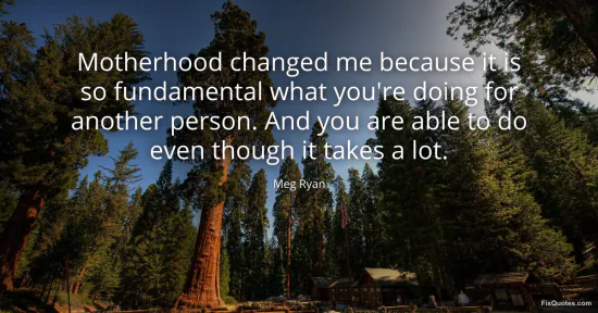 Ryan, Meg. "Motherhood changed me because it is so fundamental what you're doing for another person. And you are able to do even though it takes a lot." FixQuotes. January 16, 2026. https://fixquotes.com/quotes/motherhood-changed-me-because-it-is-so-130758/.