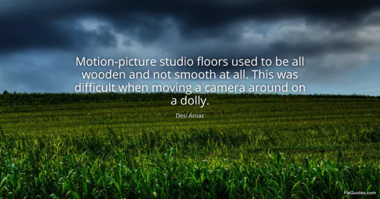 Arnaz, Desi. "Motion-picture studio floors used to be all wooden and not smooth at all. This was difficult when moving a camera around on a dolly." FixQuotes. January 17, 2026. https://fixquotes.com/quotes/motion-picture-studio-floors-used-to-be-all-42724/.