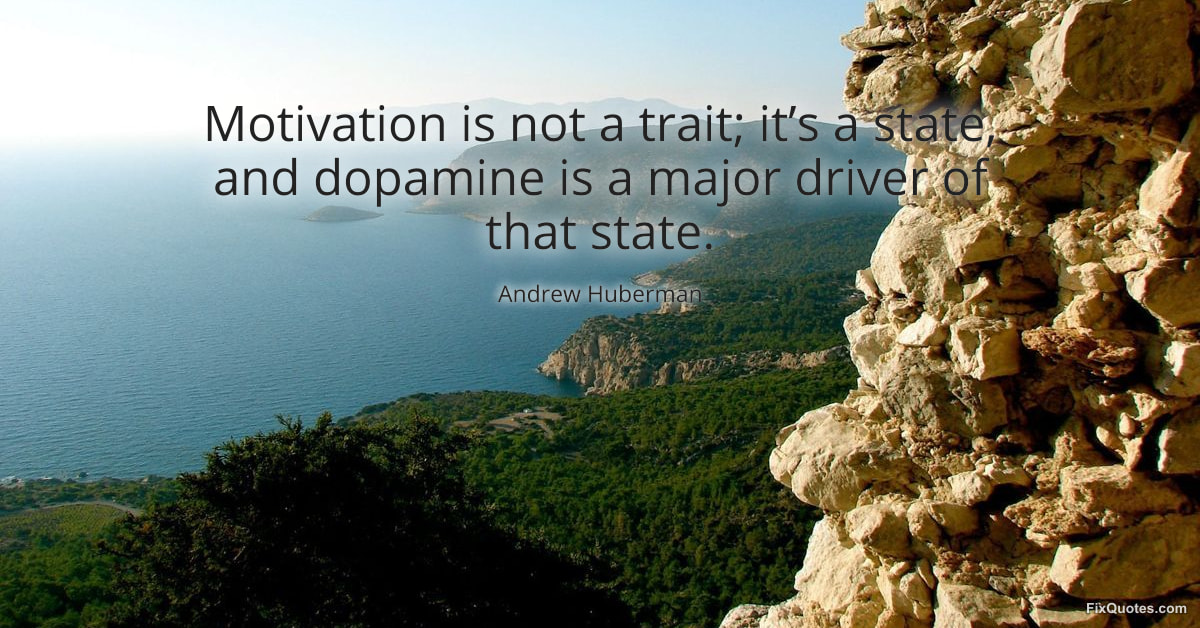Huberman, Andrew. (2026, January 24). Motivation is not a trait; it’s a state, and dopamine is a major driver of that state. FixQuotes. https://fixquotes.com/quotes/motivation-is-not-a-trait-its-a-state-and-184119/