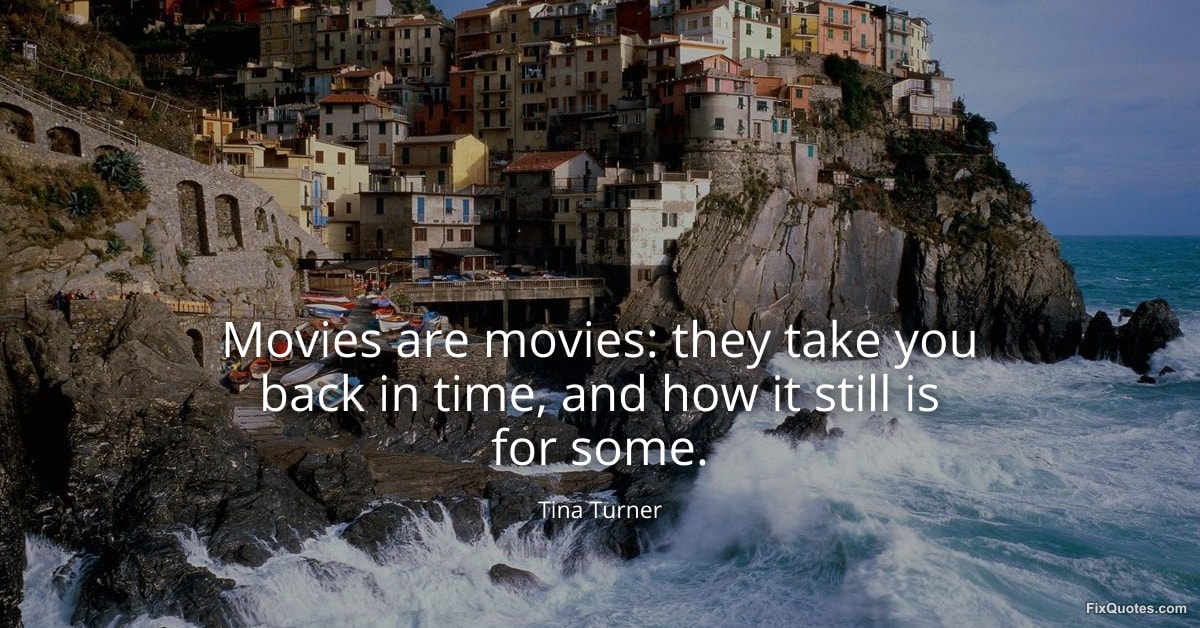 Turner, Tina. "Movies are movies: they take you back in time, and how it still is for some." FixQuotes. January 15, 2026. https://fixquotes.com/quotes/movies-are-movies-they-take-you-back-in-time-and-169752/.