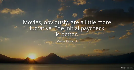 Alazraqui, Carlos. (2026, January 16). Movies, obviously, are a little more lucrative. The initial paycheck is better. FixQuotes. https://fixquotes.com/quotes/movies-obviously-are-a-little-more-lucrative-the-125320/