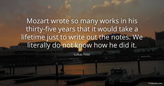 Foss, Lukas. (2026, January 17). Mozart wrote so many works in his thirty-five years that it would take a lifetime just to write out the notes. We literally do not know how he did it. FixQuotes. https://fixquotes.com/quotes/mozart-wrote-so-many-works-in-his-thirty-five-64571/