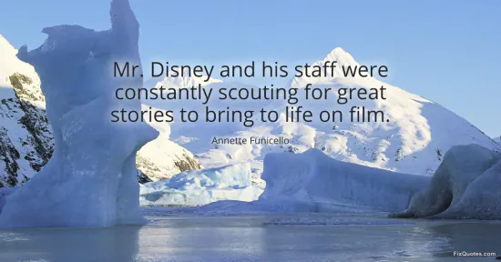 Funicello, Annette. "Mr. Disney and his staff were constantly scouting for great stories to bring to life on film." FixQuotes. January 17, 2026. https://fixquotes.com/quotes/mr-disney-and-his-staff-were-constantly-scouting-74817/.