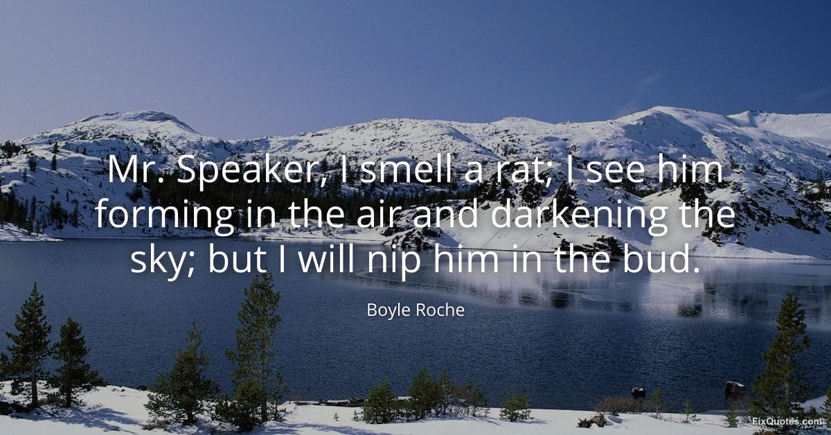 Roche, Boyle. (2026, February 16). Mr. Speaker, I smell a rat; I see him forming in the air and darkening the sky; but I will nip him in the bud. FixQuotes. https://fixquotes.com/quotes/mr-speaker-i-smell-a-rat-i-see-him-forming-in-the-157845/