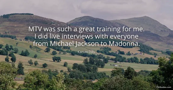 Daly, Carson. "MTV was such a great training for me. I did live interviews with everyone from Michael Jackson to Madonna." FixQuotes. January 15, 2026. https://fixquotes.com/quotes/mtv-was-such-a-great-training-for-me-i-did-live-140401/.