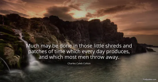 Colton, Charles Caleb. "Much may be done in those little shreds and patches of time which every day produces, and which most men throw away." FixQuotes. January 15, 2026. https://fixquotes.com/quotes/much-may-be-done-in-those-little-shreds-and-127875/.