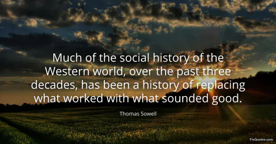 Sowell, Thomas. (2026, January 15). Much of the social history of the Western world, over the past three decades, has been a history of replacing what worked with what sounded good. FixQuotes. https://fixquotes.com/quotes/much-of-the-social-history-of-the-western-world-2131/